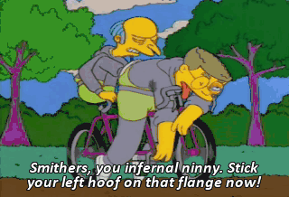 Smithers, you infernal ninny. Stick your left hoof on that flange now!