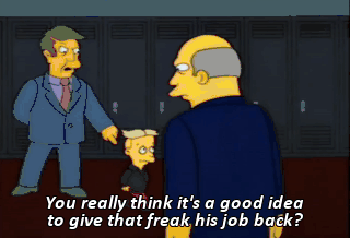 You really think it's a good idea to give that freak his job back? Ah, he seems to know the students' names.