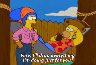 Fine, I'll drop everything I'm doing just for you! But you'll have to live with the guilt of ruining my Saturday. Can you live with that, Marge? Huh? Can ya? - Yup! - Can ya?