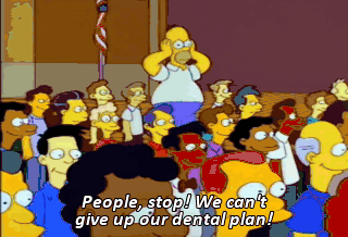 People, stop! We can't give up our dental plan! Lenny, without that dental plan, you wouldn't have that diamond in your tooth. Yoink! Hey!