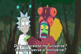 Did you create my universe? Is my universe a miniverse? Microverse! Uh, teenyverse. Ugh! You bastard!