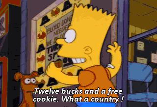 Twelve bucks and a free cookie. What a country ! Cute little guy. He's startin' to come around.