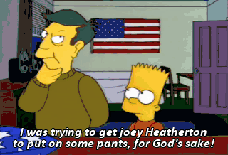 I was trying to get joey Heatherton to put on some pants, for God's sake!