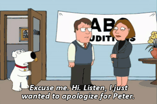 Excuse me. Hi. Listen, I just wanted to apologize for Peter.