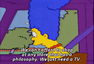 We can't afford to shop at any store that has a philosophy. We just need a TV. We're going to go to the outlet mall in Ogdenville.