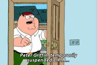 Peter Griffin, temporarily suspended C.P.R... Holy crap! We should go.