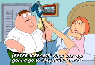 (PETER SCREAMS) Now, are you gonna go to Meg's play or not? Yes! You like eating red carpet, tough guy? Yes! Say you like eating red carpet! PETER: I like eating red carpet.