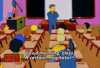 Good morning, class. A certain... agitator-- For privacy's sake, let's call her Lisa S. No, that's too obvious. Uh, let's say L. Simpson--
