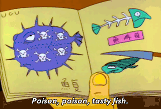Poison, poison, tasty fish. Concentrate, concentrate. I want fugu ! Aaah ! Hmm, fan-fugu-tastic !
