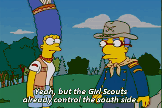 Yeah, but the Girl Scouts already control the south side. Then I guess this means war. Will you be my mommy?