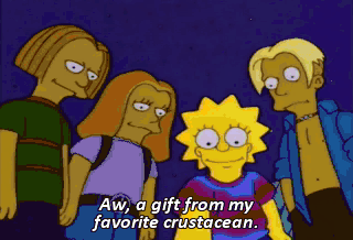 Aw, a gift from my favorite crustacean. Um, did you learn that word from a teacher or something? No. No, I heard it on Baywatch. Oh, cool. That's cool. Baywatch. David Hasselhoff, man.