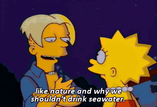 like nature and why we shouldn't drink seawater. This is the most thoughtful thing anybody ever-- Sweet merciful crap! My car!