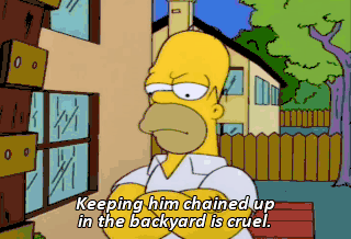 Keeping him chained up in the backyard is cruel. Pulling on his tail is cruel. Yelling in his ears is cruel. Everything is cruel. So excuse me if I'm cruel!