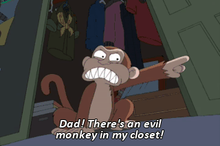 Dad! There's an evil monkey in my closet! TOM: I don't care, Son. I just do not care.