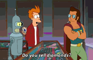 Do you sell diamonds? You come to the right joint, ace. (BOTH CHUCKLING) I guess what I'm saying is, the next time you almost die, I want it to be as my wife. (GASPS)