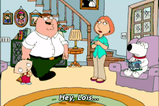 Hey, Lois... Hey, did you pee in here? In a moment! What did you just say? Peter, we have a serious problem we need to discuss. Aw, Jeez, This isn't another one of those interventions, is it?