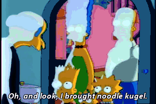 Oh, and look, I brought noodle kugel. Aah ! You.. bad dog. Bad... neighbor dog. Here. Let me help you up, Mr. Burns.