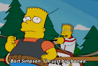 Bart Simpson. I'm just big-boned. No such thing. - Growth spurt? - Doesn't exist. This can't be legal! It's legal enough!