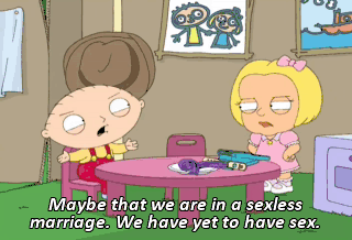 Maybe that we are in a sexless marriage. We have yet to have sex. Do you even know what sex is? That's not the point! Don't change the... It's a kind of cake?