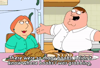 There were so many boobs, I didn't know whose boobs I was grabbing, your boobs or my boobs. I know. It was amazing. Much better than that night you pretended your penis was Danny Aiello.