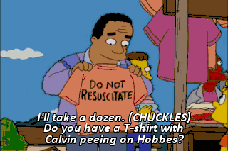 I'll take a dozen. (CHUCKLES) Do you have a T-shirt with Calvin peeing on Hobbes?