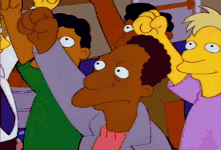 Homer! Homer! Homer! I move that Homer Simpson be our new union president. All in favor? Aye! All opposed? Nay. Congratulations, Homer. - Hey, what does this job pay? - Nothin'.