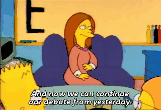 And now we can continue our debate from yesterday. When we left off, Calvin and Tanya were arguing...