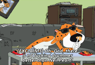 (EXCLAIMS) Oh, God, there is no fucking drummer better than Neil Peart! It ain't easy being cheesy. Oh, Smilla, your sense of snow is equaled only by your sense of love.