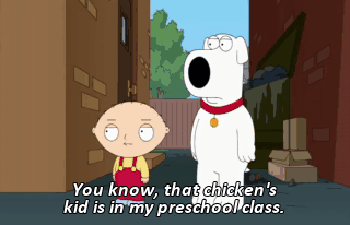 You know, that chicken's kid is in my preschool class. I don't really want to be friends with him, but he knows a lot of chicks.