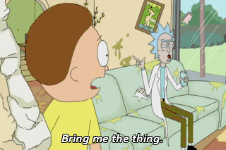 Bring me the thing. What --what thing? The thing. The thing. It's got, like, buttons on it and lights on it, It -- it -- it beeps. Rick!