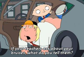 If your teachers ask about your bruises, what do you tell them? I got hit by a baseball!