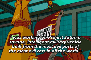 I was working on Project Satan a savage, intelligent military vehicle built from the most evil parts of the most evil cars in all the world--
