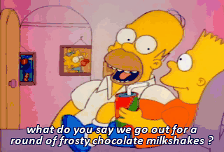 what do you say we go out for a round of frosty chocolate milkshakes ? All righty ! Bart, I feel so bad for going so many years without... mmm, hmm--