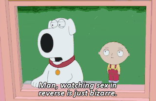 Man, watching sex in reverse is just bizarre. God, where does Quagmire meet these women?