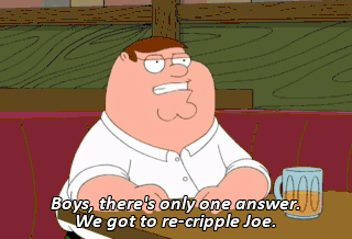 Boys, there's only one answer. We got to re-cripple Joe. It's the right thing to do, like taking out Hitler. See? We had a plan for that all along.