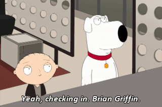 Yeah, checking in. Brian Griffin. You should usually do that. You should check me in.