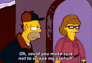Oh, could you make sure not to scrape my asphalt. Kiss my asphalt. So I says, "Kiss my asphalt." Hmm? Hmm?