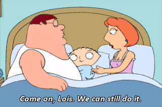 Come on, Lois. We can still do it. He'll just think I'm hurting you. Relax, honey. It's only for tonight. Roll over. Roll over, I say! Smells like cheese.