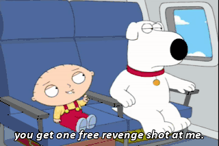 - you get one free revenge shot at me. - Okay. But I'm not gonna tell you when it's coming. This is gonna be fun.