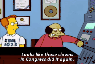 Looks like those clowns in Congress did it again. What a bunch of clowns. How does he keep up with the news like that?