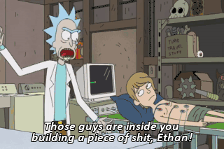 Those guys are inside you building a piece of shit, Ethan! They're inside you building a monument to compromise! Fuck 'em. Fuck those people. Fuck this whole thing, Ethan.