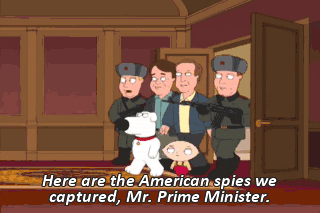 Here are the American spies we captured, Mr. Prime Minister. (GASPING) (SIGHING) (GASPING) (SIGHING)