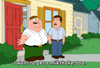 I want to get a milkshake, too. Too bad. Go get your own father. (HUMMING)
