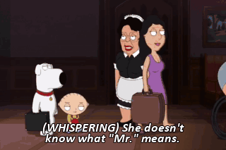 (WHISPERING) She doesn't know what "Mr." means.
