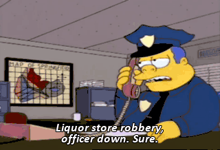 Liquor store robbery, officer down. Sure. And I'm Edward G. Robinson. Waah!