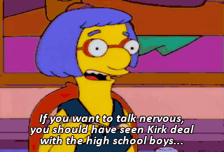 If you want to talk nervous, you should have seen Kirk deal with the high school boys...