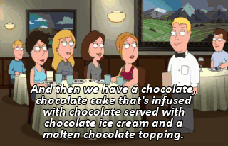 And then we have a chocolate, chocolate cake that's infused with chocolate served with chocolate ice cream and a molten chocolate topping.