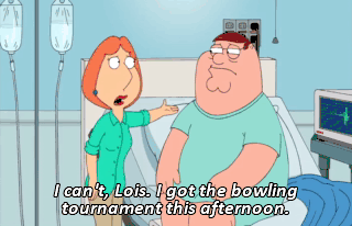 I can't, Lois. I got the bowling tournament this afternoon. Quagmire and Joe are counting on me.