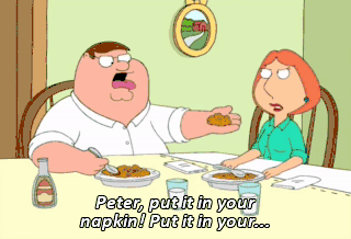 Peter, put it in your napkin! Put it in your...