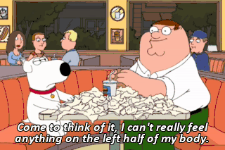 Come to think of it, I can't really feel anything on the left half of my body. Really? That doesn't sound good. Peter, are you winking at me? (SCREAMING) Oh, my God, someone call an ambulance!
